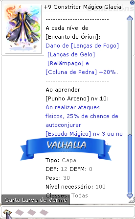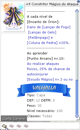 Ao realizar ataques físicos, 25% de chance de autoconjurar [Escudo Mágico ] nv.3 ou no maior nível aprendido.