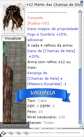 Dizem que esse manto foi achado por um aventureiro mergulhado na lava do Vulcão de Thor. Ainda bem que eles tinha luvas para resgatá-lo....