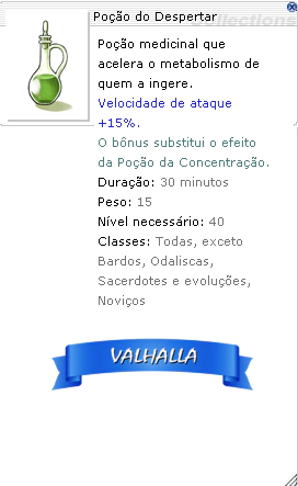 Classes: Todas, exceto Bardos, Odaliscas, Sacerdotes e evoluções, Noviços